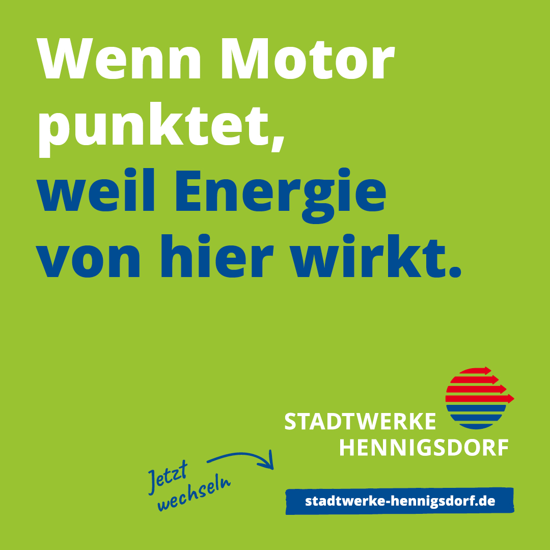 Ein ganz besonderer Dank gilt den Stadtwerken Hennigsdorf für die Unterstützung unseres Vereins und ihr klares Bekenntnis zum Sport in unserer Stadt. Das ist Energie von hier, die wirkt – auch im Spiel.💚🤝